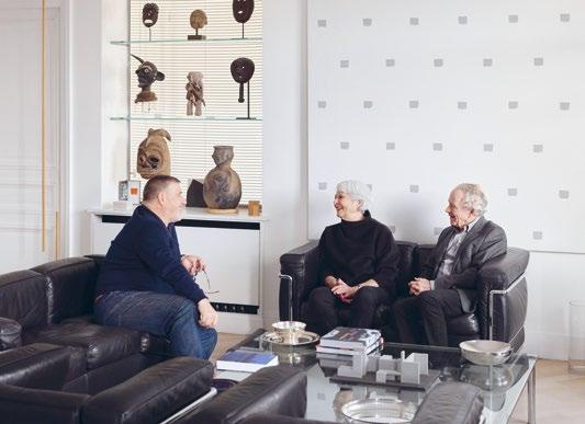 papa fermera les yeux, préviens-moi pour que je vienne avant tout le monde… » JeanMarie disait que l’art contemporain lui avait permis d’avoir cet œil novateur dans le choix du mobilier. Éviter les suiveurs, les petits maîtres, que ce soit en art comme dans les meubles. Quand je lui ai proposé d’exposer de l’art contemporain à la galerie, c’était pour suivre sa philosophie. Au fond, il avait été précurseur de ce mouvement du mélange des styles et des époques. Il n’était pas très enthousiaste au début, mais a ensuite été ravi de rencontrer Michelangelo Pistoletto ou Malcolm Morley, et de retrouver son ami Daniel Buren qui a merveilleusement habillé la façade de l’immeuble de la place Beauvau de ses célèbres rayures le temps d’une exposition éphémère à la galerie.