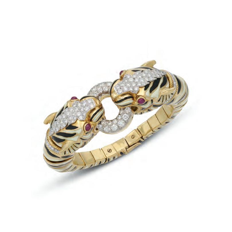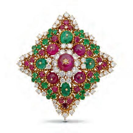 from a panoply of prestigious international houses including Cartier, Van Cleef & Arpels, Boucheron, Chaumet, Bulgari, Tiffany & Co. and David Webb. This finely curated ensemble reflects the collector’s assured taste and sophisticated artistic sensibilities.