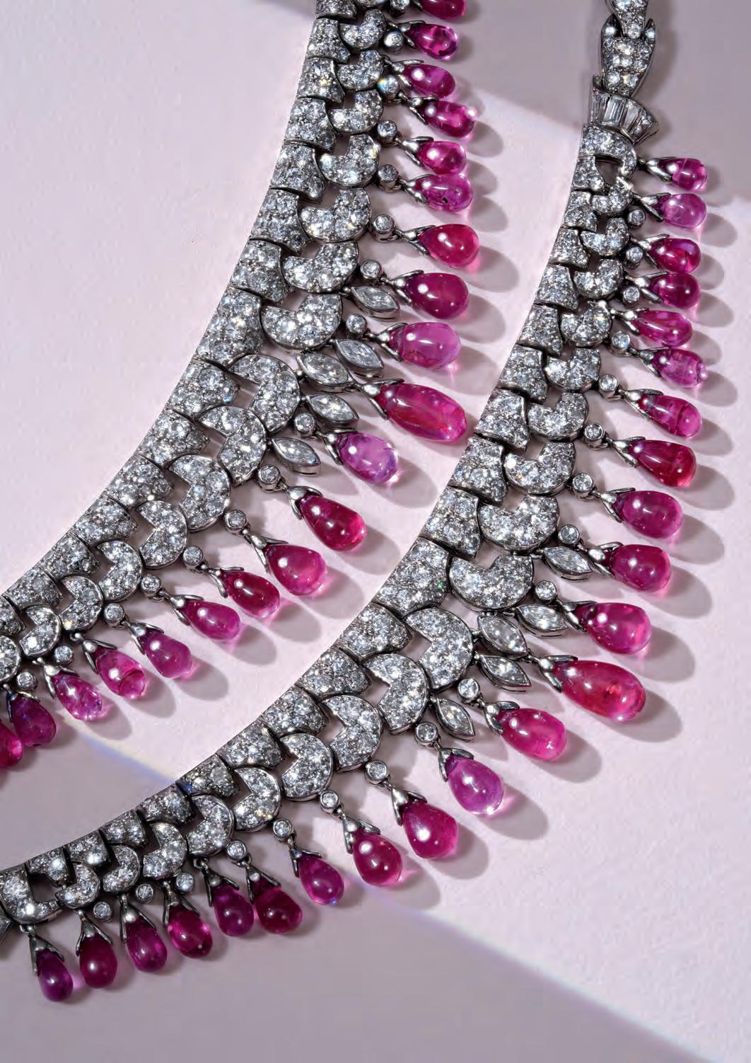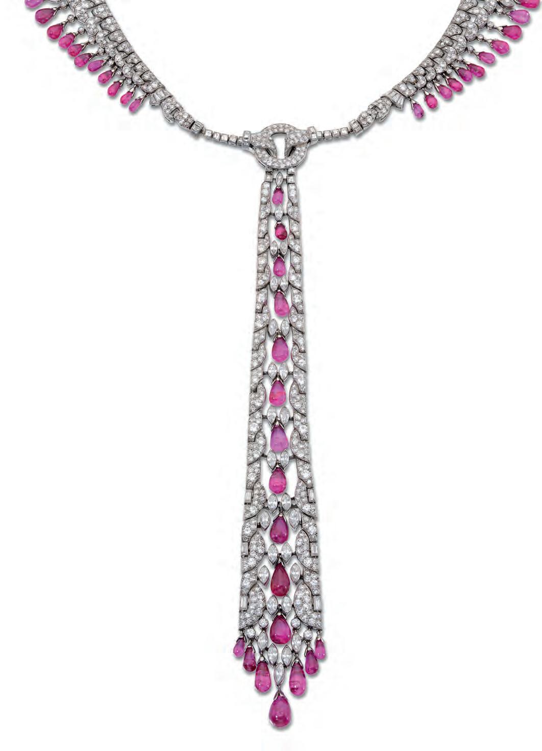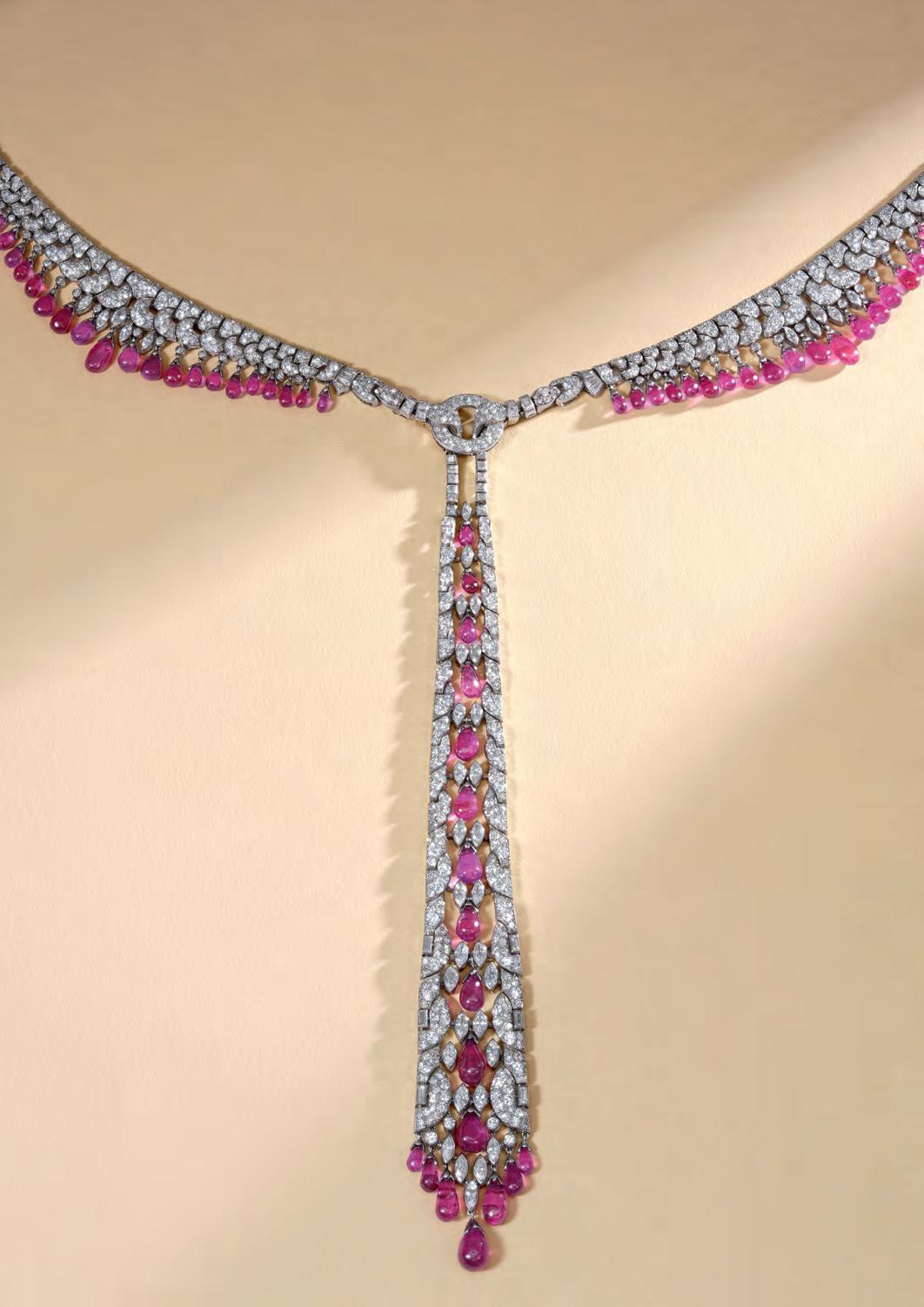 SUPERB AND RARE RUBY AND DIAMOND ‘CRAVATE’ NECKLACE