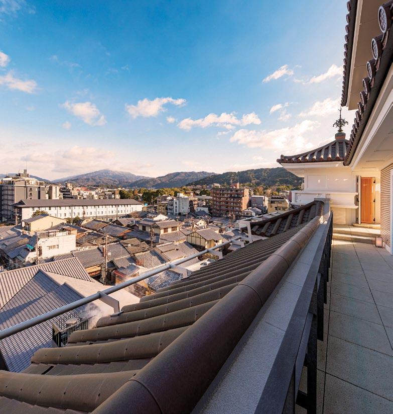on the grounds of the Gion Kobu Kaburenjo, the district's legendary geiko and maiko theatre precinct. While inheriting its valuable legacy, the hotel breathes new life into the Yasaka Kaikan, a 90-yearold cherished landmark for the local community.