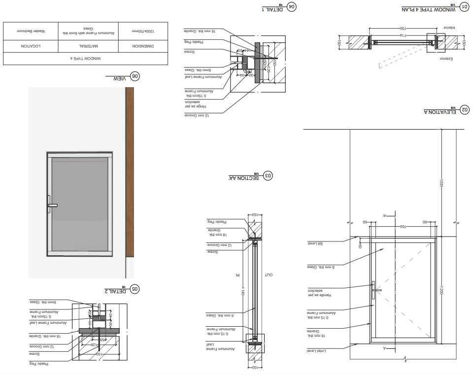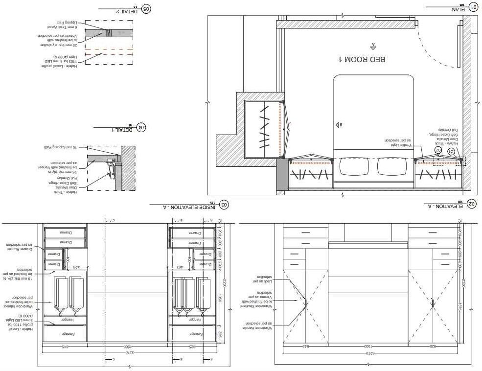 BEDROOM 1 AND TOILET 1 SECTIONS AND DETAILS