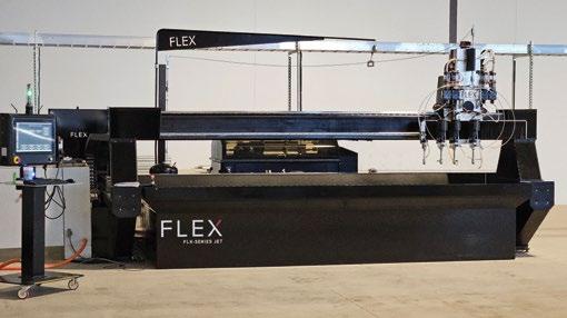 each cutting head is supplied with its own abrasive delivery system to ensure uniform cutting quality, and systems can be paired with higher-horsepower pumps to prevent performance loss at individual heads. adjustable head spacing and independent head control allow fabricators to tailor setups to part geometry and production requirements. built in the united States, FlexJet waterjet systems are designed for high-speed positioning, reliability, and demanding cutting applications, with service support available throughout North a merica.