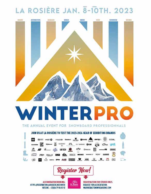 Après son lancement réussi l’année dernière, le WinterPro revient à La Rosière avec un événement plus important. Organisé par Act Media, le salon a remplacé le Rock On Snow Pro qui se tenait chaque année à La Clusaz. La staton de La Rosière, réputée pour ses chutes de neige, est idéalement située au milieu de la HauteTarentaise, juste au-dessus de Bourg Saint Maurice, et ofre un dénivelé de 2 000 m (850 m - 2 850 m). Elle fait parte du domaine du San Bernardo, avec 170 km de pistes répartes entre La Rosière, en France, et La Thuile ,en Italie. Comme l’an dernier, il s’agira de la première démo sur neige de l’année, les détaillants se réunissant pour tester, pour la première fois, la gamme de produits snowboard 2023/24 des marques.