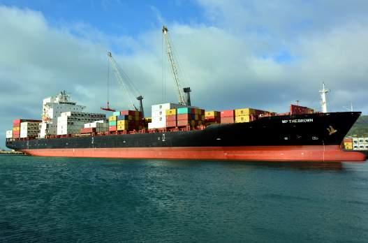 ► MP The Brown alongside at the container terminal.
