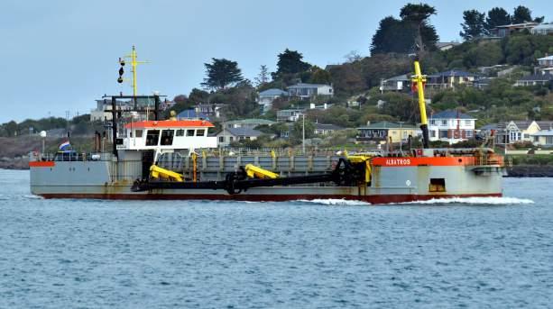 ► Albatros inbound with her dredging arm raised but ready to descend on any unsuspecting shallow patches.