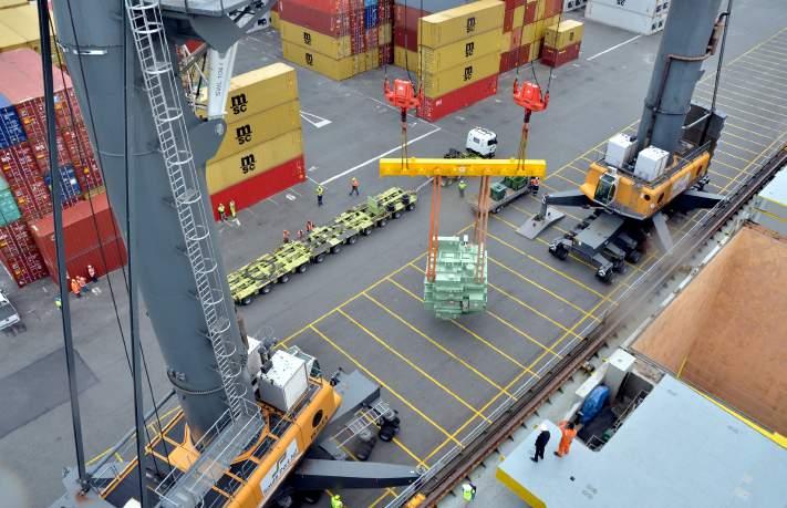 ► South Port’s mobile cranes discharging a transformer from the Weaver Arrow