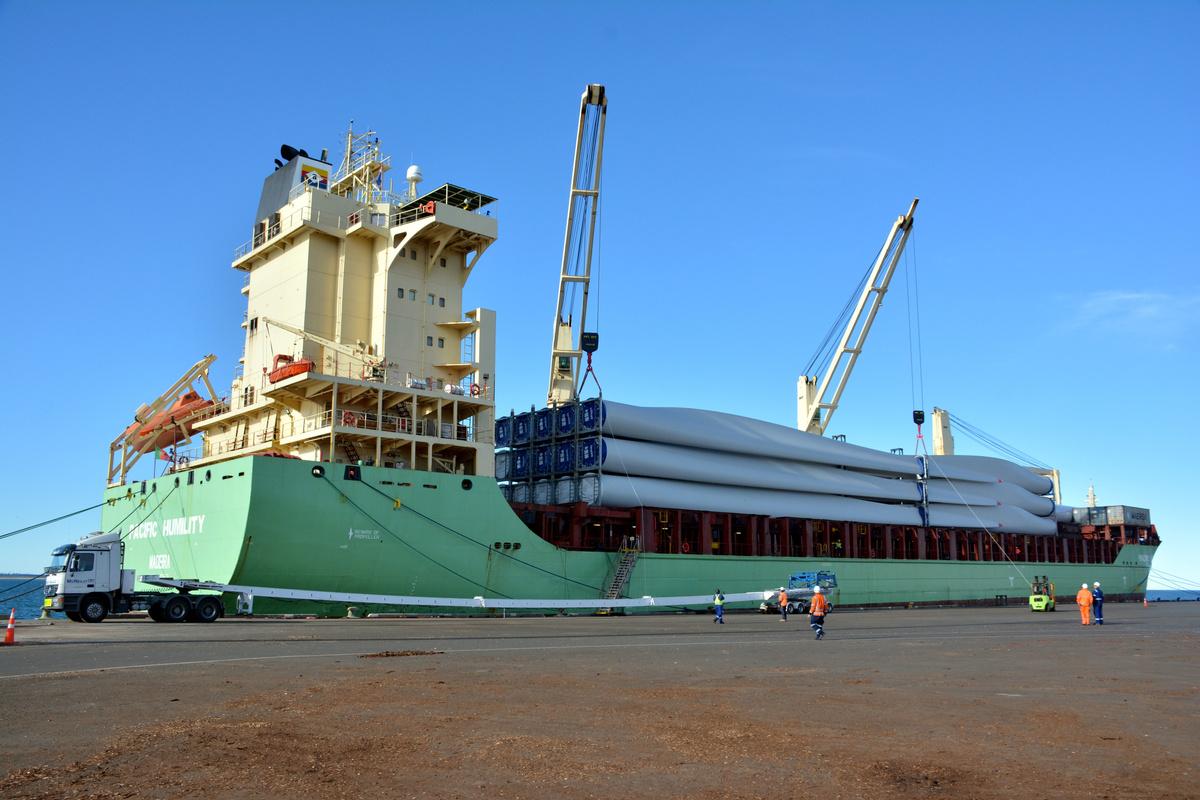 Construction of the Kaiwera Downs I wind farm is half-way through, just six months after the project started. In an exciting key milestone, the 67m turbine blades and other components arrived here at South Port in the first week of May.