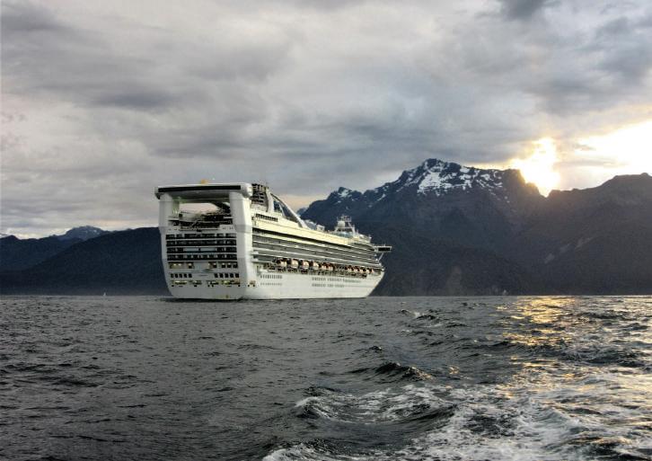 The Golden Princess heading in for Milford Sound.