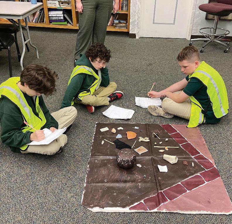 place in the museum’s lab classroom, where students learned about Boston’s archeological “Big Dig.” Students donned excavation and lab attire, and learned about how modern archae ologists analyze the treasures found in Boston’s underground. Students studied colonial artifact samples, and as “archeologists” analyzed and classi fied them to decipher ideas about what Boston colonial life may have looked like up close.