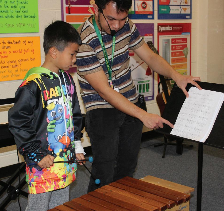 the beat and melodic contour of the piece. Students also immerse in music literacy by learning the rudiments which include note reading.