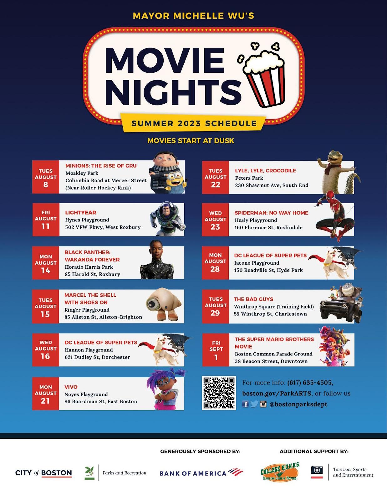 All shows begin at dusk. This series is sponsored by Highland Partners Charitable Fund and hosted by Boston Parks and Recreation Department in partnership with the Mayor’s Office of Tourism, Sports, and Entertainment.