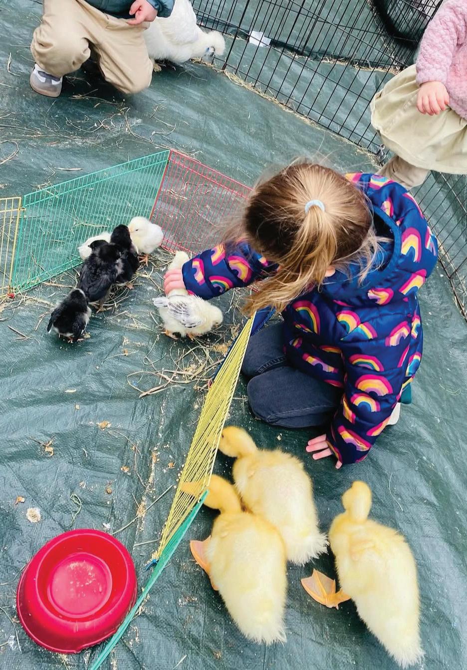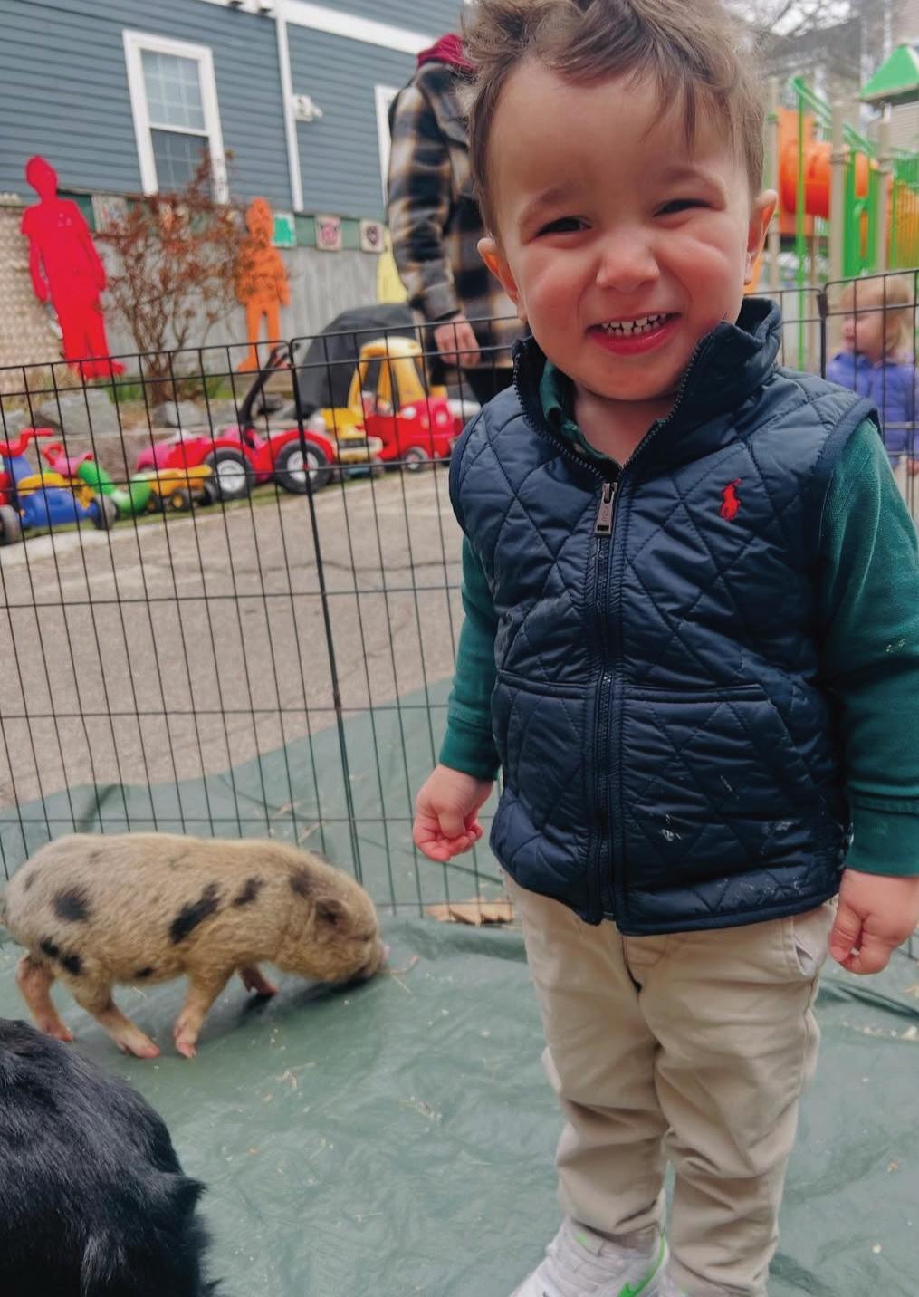 Our students in the Toddler Program had a great visit from The Animal Craze traveling petting zoo. Goats, chicks, ducks, rabbits and the cutest pig set up camp in our playground. Toddler students got their