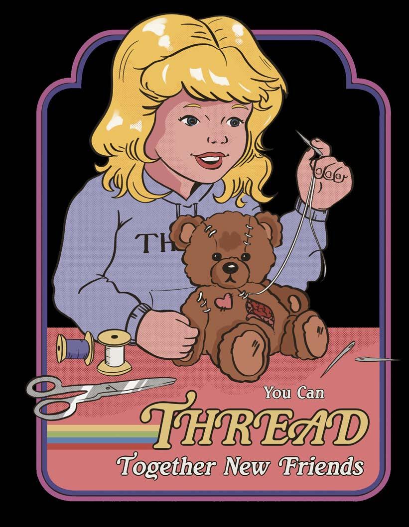Steven Rhodes is an artist from Brisbane, Australia, who has become popular for reimagining children’s illustrations from the ‘70s and ‘80s. Rhodes combines these illustrations with his interest in horror movies and the supernatural to create a humorous subversion of a typical advertisement. Steven’s artwork became especially popular when sold as merchandise at retail stores like Hot Topic and Spencer’s. Most people have probably seen his art on a T-shirt while shopping or maybe even own a piece of his and don’t know about the artist who created it.