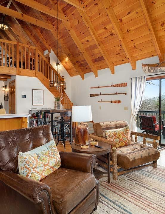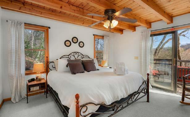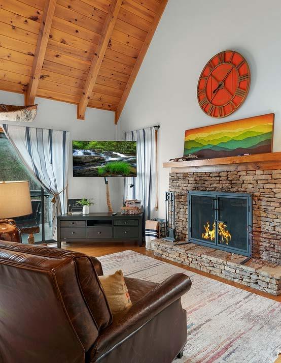 Designed with relaxation in mind, Wanderer’s Den features three spacious king bedrooms, comfortable gathering spaces, and multiple outdoor decks where guests can unwind and enjoy the mountain air.