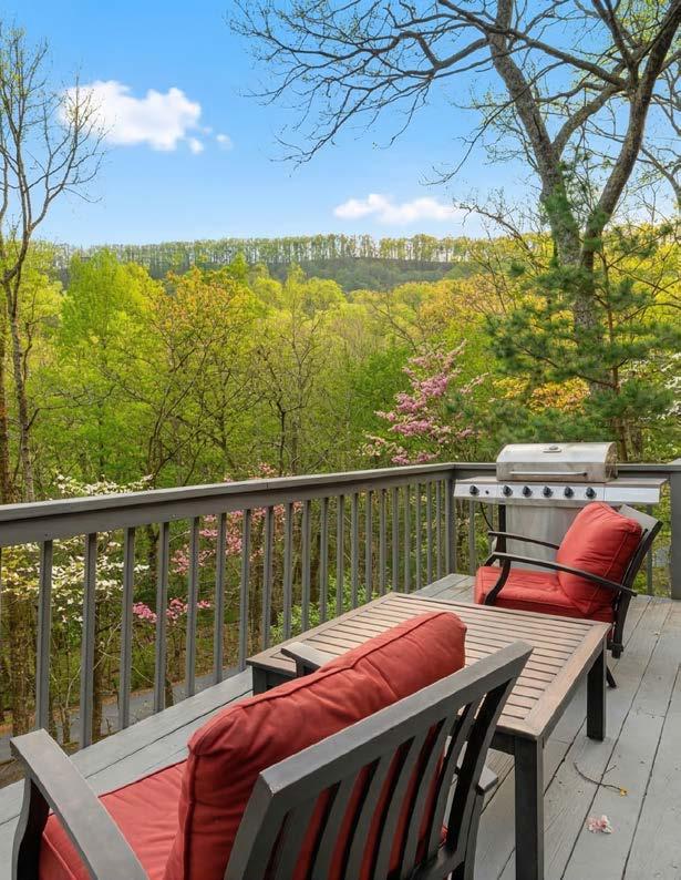 Outdoor living is one of the highlights of Wanderer’s Den. Multiple decks and porch spaces allow guests to relax and enjoy the natural beauty of Big Canoe.