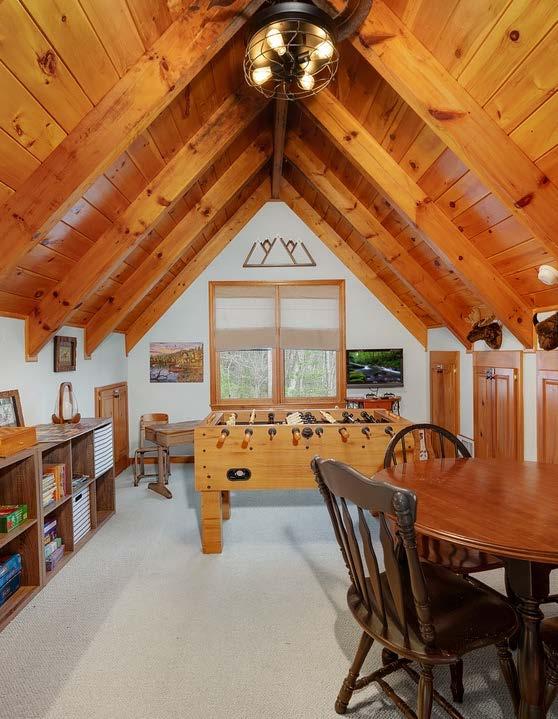 Upstairs, the loft playroom creates a fun space for friendly competition and relaxing downtime. Guests can enjoy: