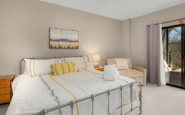 The main level king suite features deck access and a private bathroom with shower/tub combination.