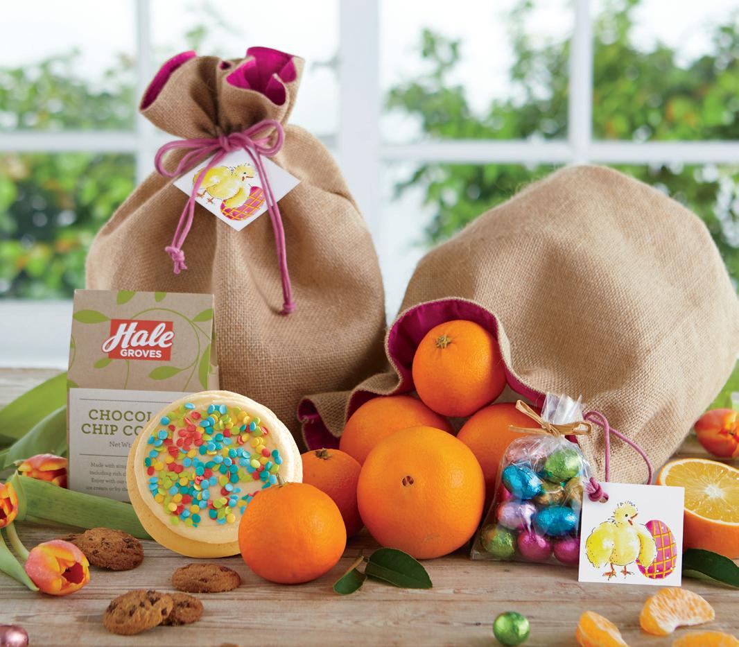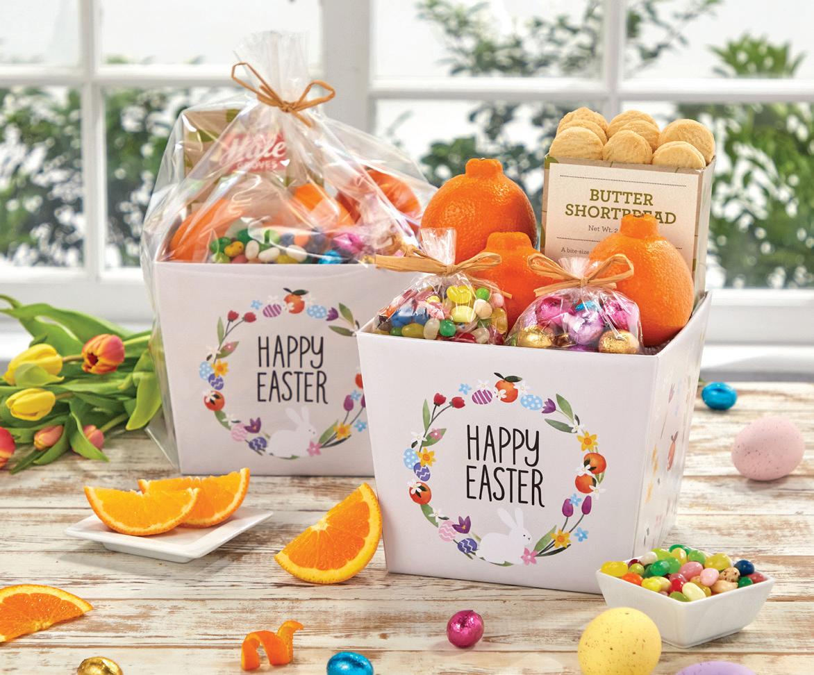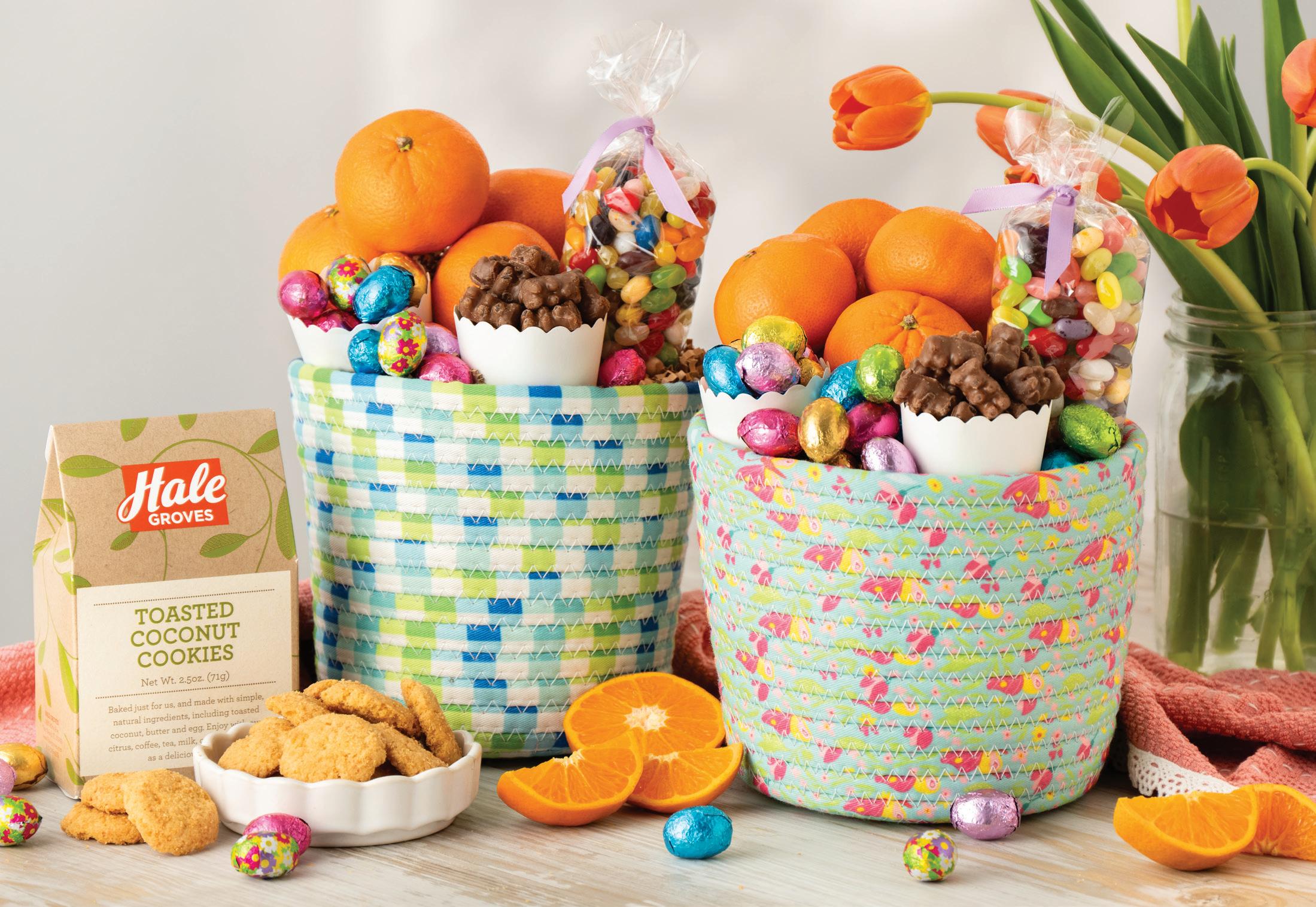 A little sweet, a little tart, this colorful basket pairs our juicy springtime citrus with silky milk chocolate and Jelly Belly® Beans. Includes our Grove Select Oranges, Honey-Sweet Tangerines, Toasted Coconut Cookies, Milk Chocolate Easter Eggs, Candied Fruit Slices and Jelly Belly® Beans. #2062 (pictured, approx. 6 lbs.) ....... $49.99