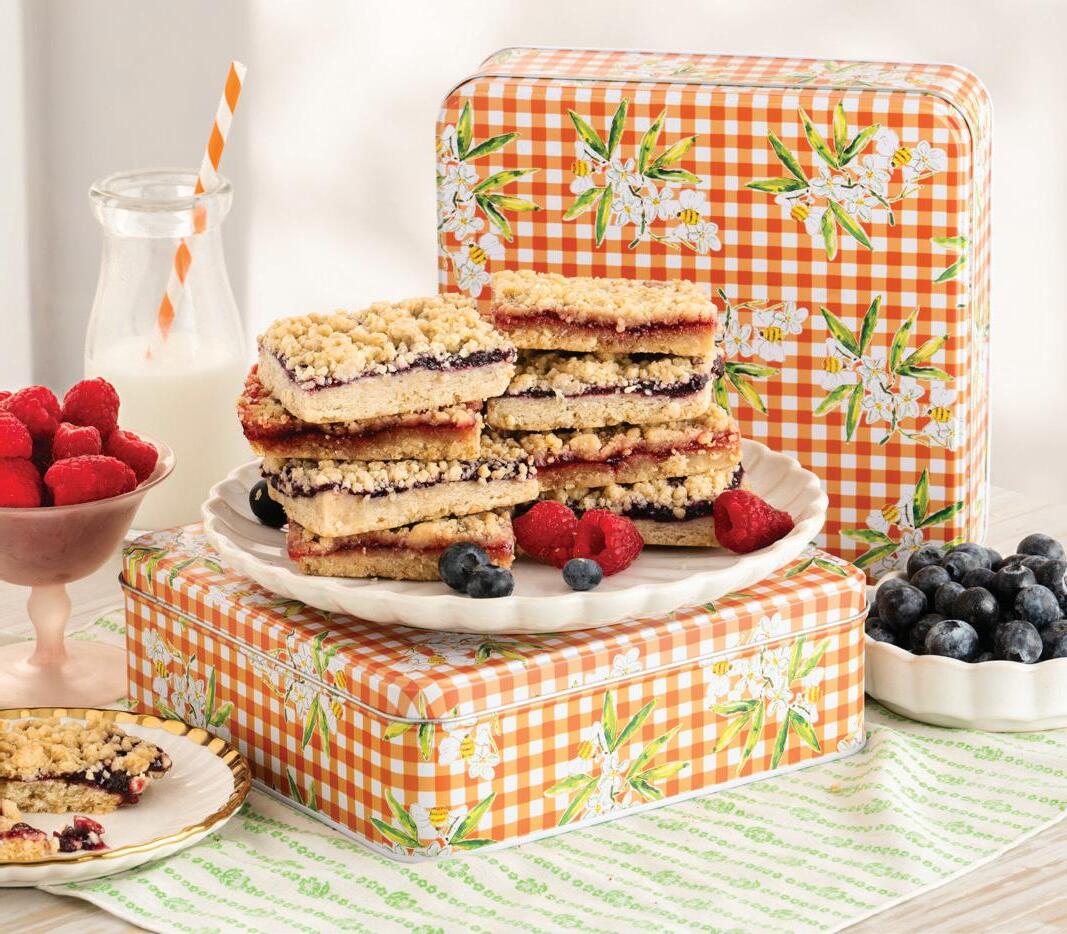 Our keepsake tin contains eight scrumptious dessert bars bursting with berry flavor. Buttery shortbread is layered with blueberries or raspberry jam, then topped with streusel crumble.