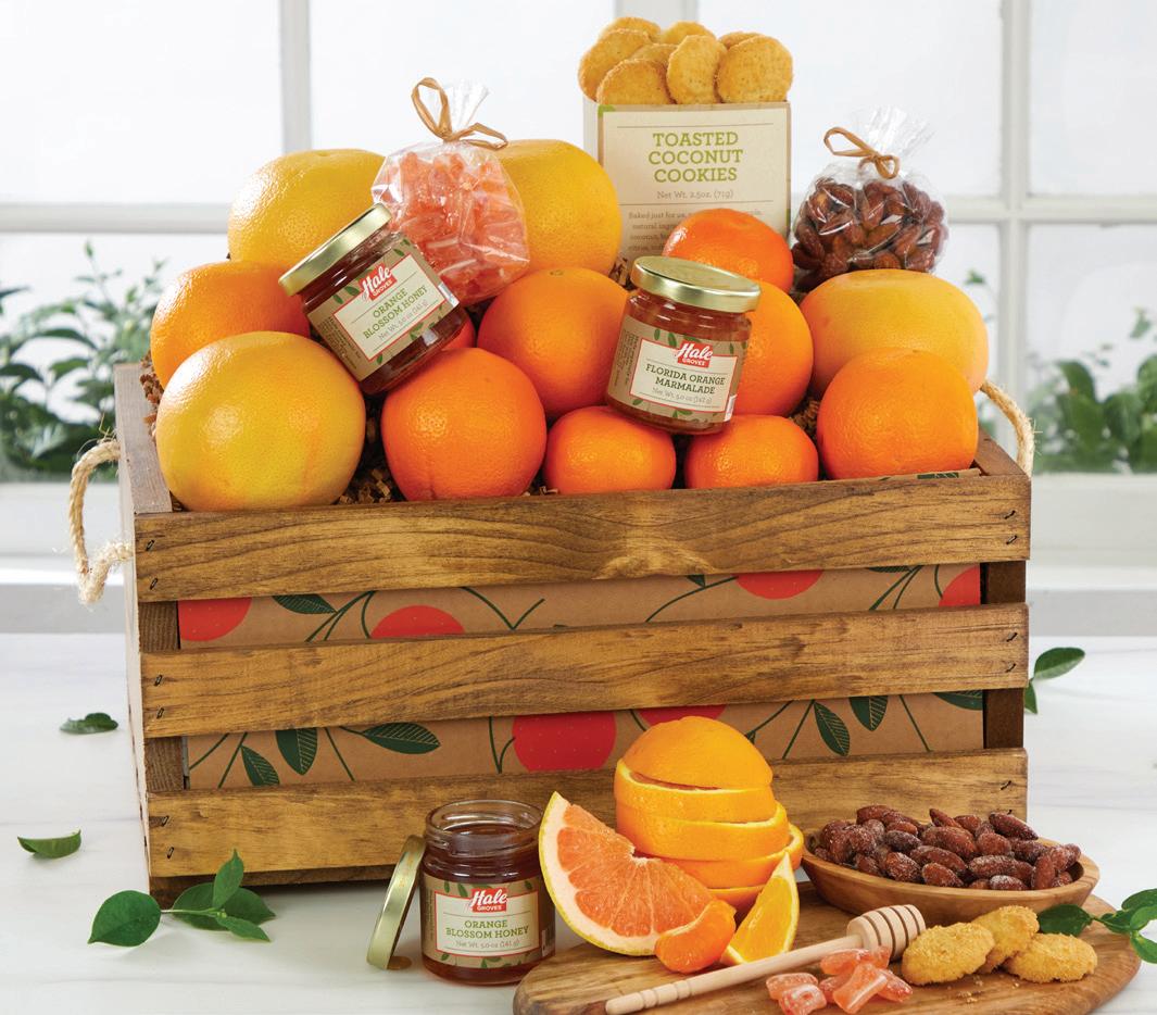 We’ve collected some of our favorites to create a delicious, festive assortment ideal for sharing. Our grove-fresh citrus is complemented by our Toasted Coconut Cookies, Orange Marmalade, Honey, Honey Roasted Almonds and Honeybell Candy.