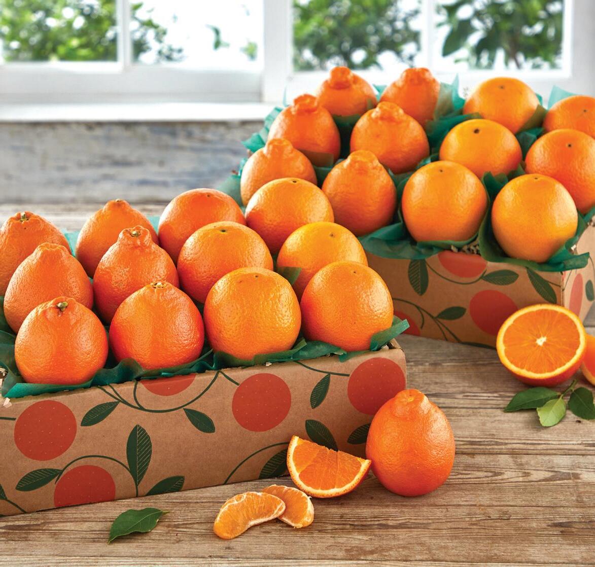 Picked to order from our groves, a selection of our favorite mandarin varieties with true orange-lovers in mind. Vibrant, intense flavor you won’t find anywhere else! Features 8 Hale Honeybells, 4 Grove Navel Oranges and 4 Honey-Sweet Tangerines.