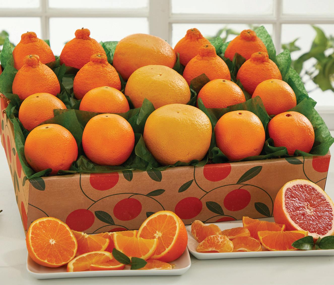 Filled with some of our tastiest citrus, this is the perfect choice for those who like a wide variety in a small package. Includes Ruby Red Grapefruit, Grove Navel Oranges, Honey-Sweet Tangerines, Petite Cara Cara Navels and Mini Honeybells.