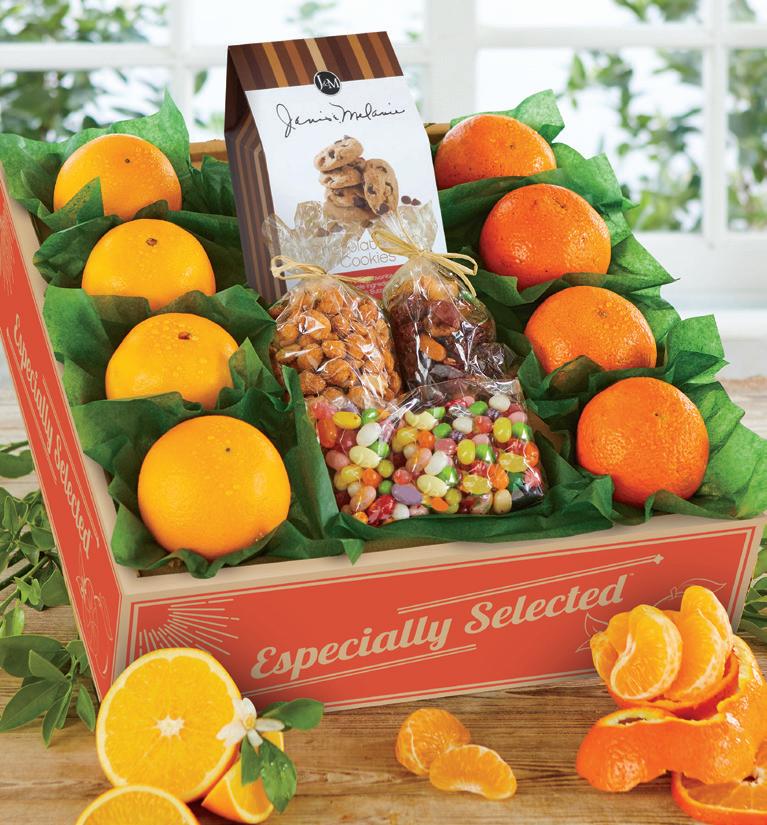 Send your loved ones a keepsake basket full of Florida sunshine! In addition to succulent Navel Oranges and Tangerines, they’ll find crunchy nuts, vibrant candies, gourmet cookies and sweet orange marmalade.