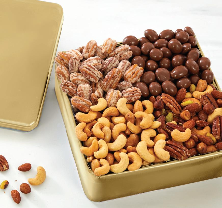 If there are nut lovers on your list, this gift is packed with savory and sweet nut treats. We’ve packed four varieties of jumbo nuts into our reusable holiday tin. This assortment includes Deluxe Mixed nuts, Cashews, Sugar Belle Praline Pecans, and Chocolate Covered Almonds. It’s a gift they’re sure to remember. Great variety!