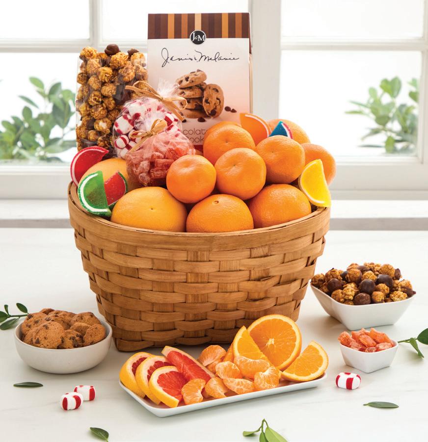 This is one treasure they won’t have to hunt for! We combine our most popular premium winter citrus – sugar-sweet Ruby Red Grapefruit, juicy and seedless Navel Oranges and snackable, easy-peel Honey-Sweet Tangerines – and package them together in a beautiful woven basket with our best treats full of traditional holiday flavor.