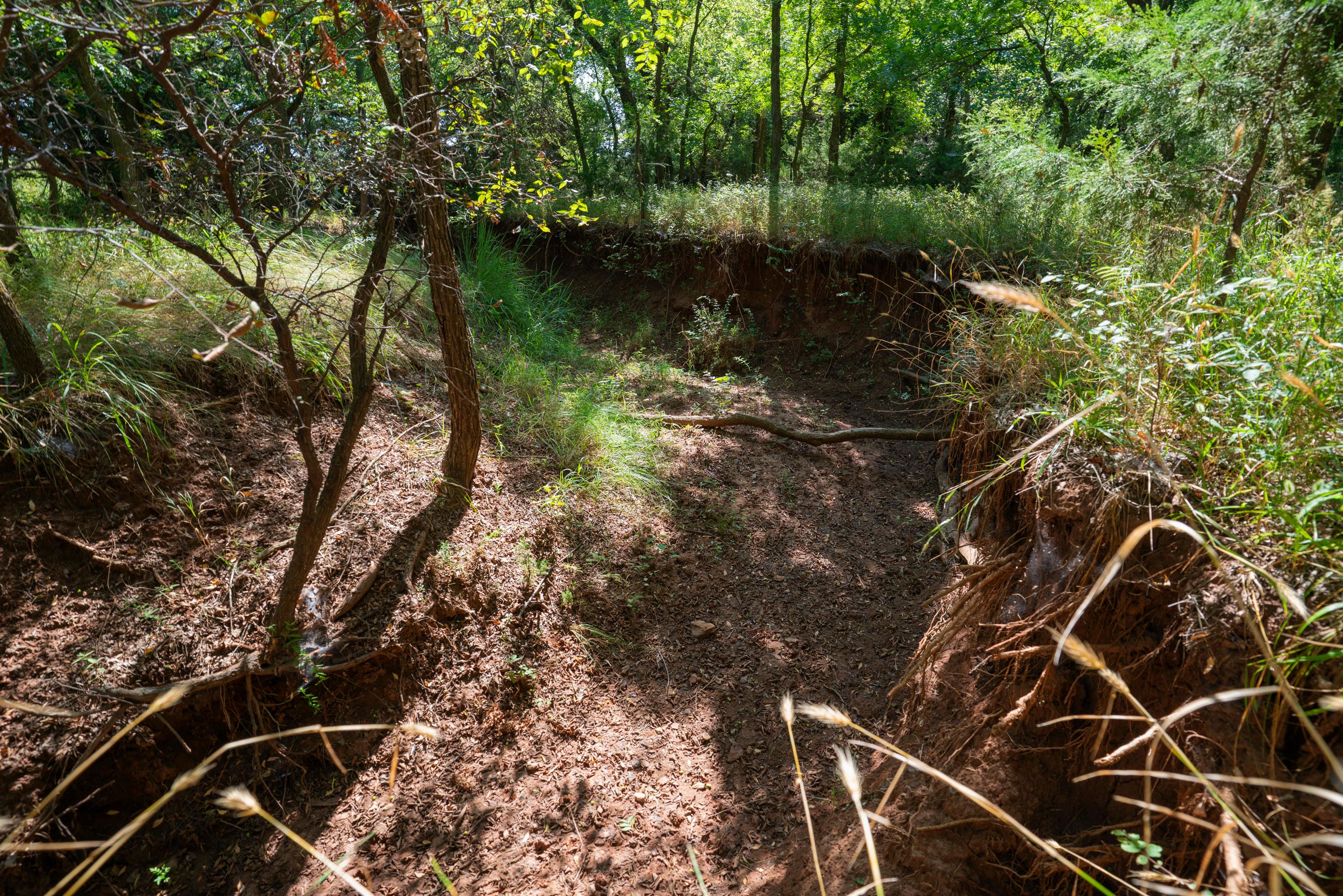 Little Mule Creek runs through the property, supplying a seasonal natural water source and contributing to habitat diversity. The presence of the creek enhances wildlife use throughout the year while also adding scenic value. Rolling topography across the tract creates elevation changes that improve drainage, sightlines, and field access, while also offering multiple vantage points for hunting or observation.
