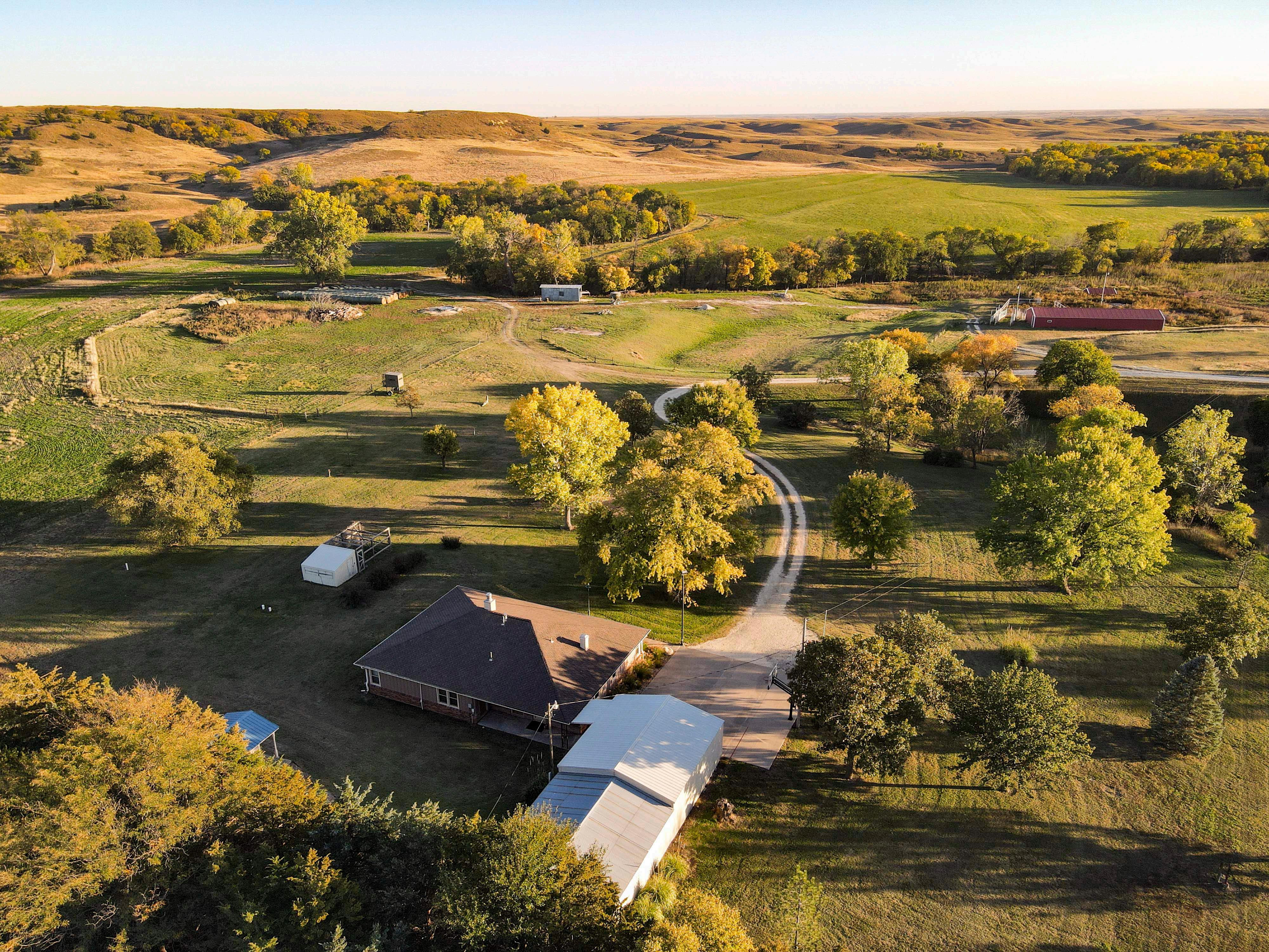 The layout of the ranch, with its blend of tillable acres, grassland, timber, and water sources, allows for a range of agricultural, recreational, and residential uses. The secluded location at the end of a dead end road limits disturbance while still maintaining reasonable access to nearby towns. With its diverse terrain and established infrastructure, Eagle Tail Ranch presents opportunities for those seeking acreage with agricultural capability and recreational features in north central Kansas.