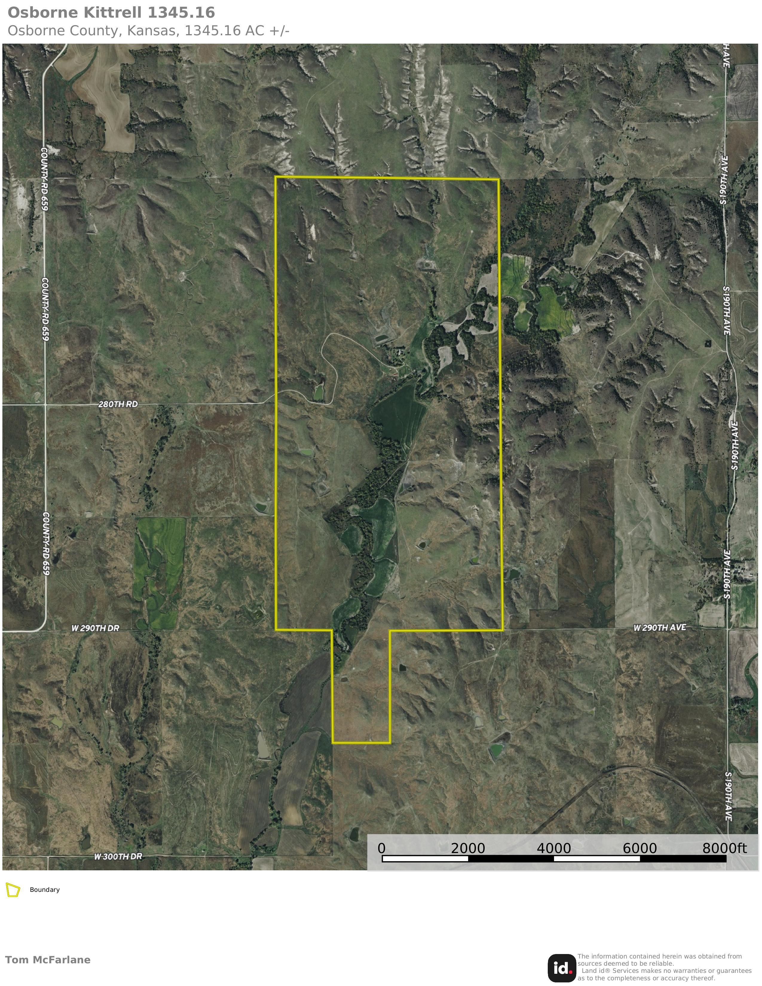 Eagle Tail Ranch includes approximately 1345 acres located in Osborne County, Kansas just north of Paradise. The property sits at the end of a dead end road, providing a setting with no through traffic and limited disturbance. With a combination of grassland, tillable acreage, timbered creek bottom, and rolling hills, the tract offers a wide range of land uses for agriculture and recreation.