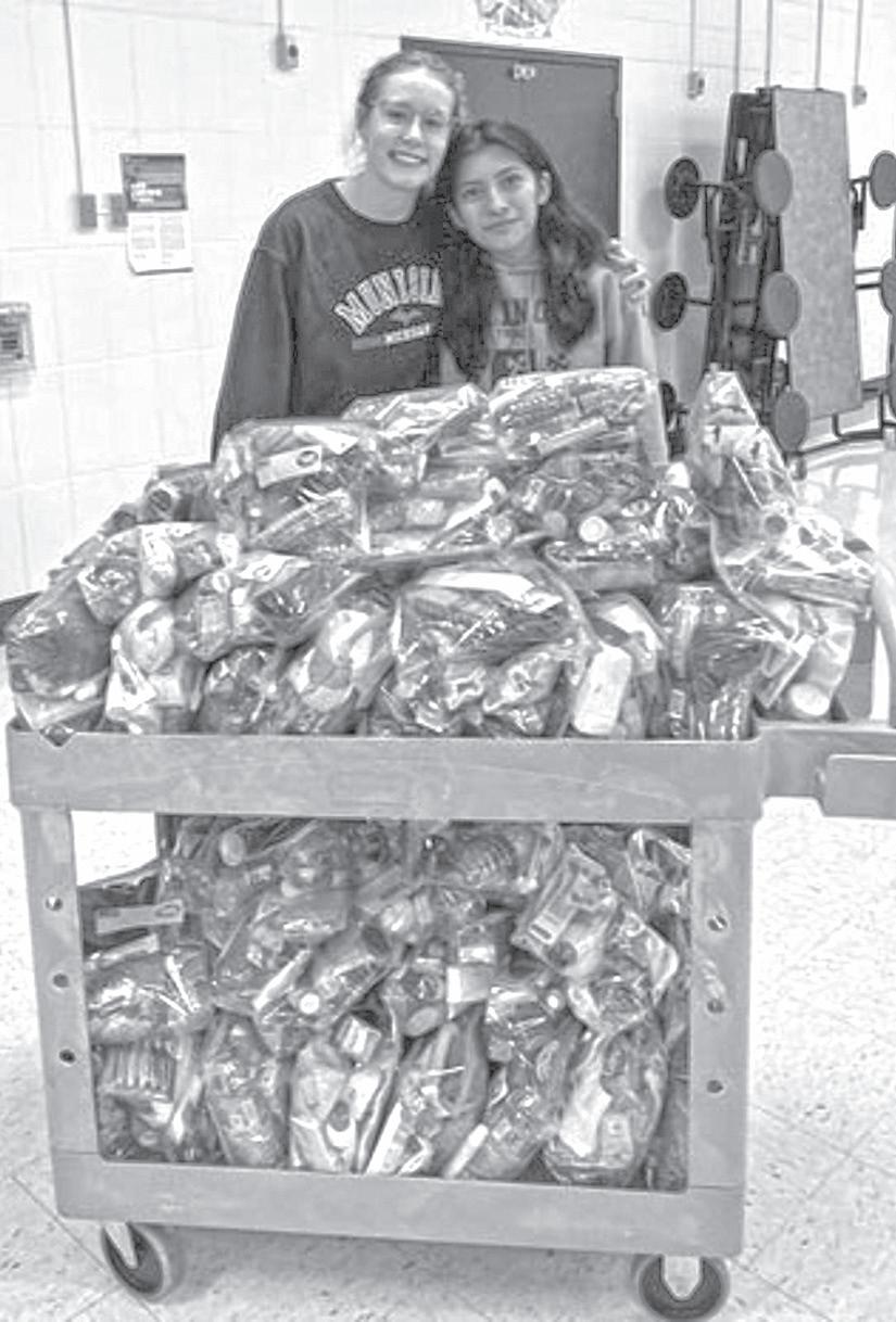 On Wednesday, Feb. 15, members of the Addison Trail Key Club assembled Blessing Bags for the Homeless. The service project was coordinated by sophomores Katelyn Ford, Key Club secretary (left), Andrea Martinez-Gorostieta, Key Club editor, and Jackelyn Macedo Hernandez (not pictured). The effort resulted in more than 100 packages filled with basic necessities, toiletries, food and more, donated by Addison Trail staff members and Naborowski Orthodontics in Addison. The bags were shared with individuals in need. Extras were to DuPage PADS.