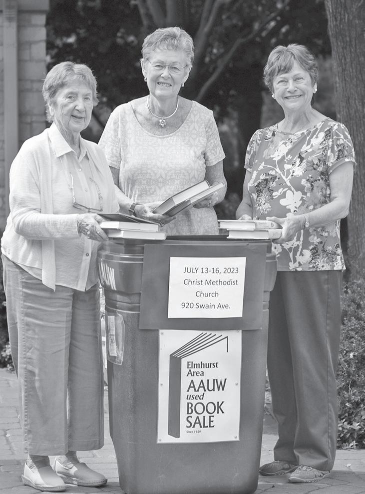 Pictured are 50-year members of the AAUW Elmhurst Area Branch including (from left): Marcia Goltermann, Janet Hodge, and Genie Urick, who are looking forward to the Elmhurst AAUW Used Book Sale coming this weekend July 13-16 at Christ United Methodist Church at 920 Swain.
