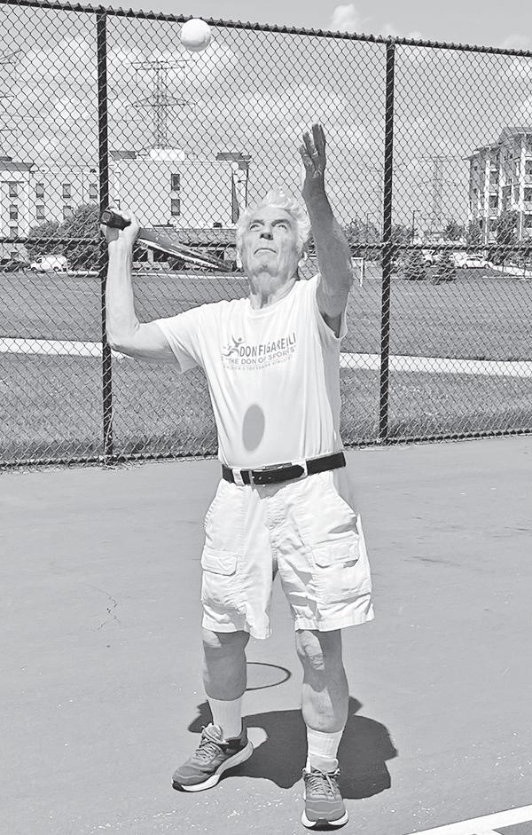 Addison’s own Don Figarelli, the “Don of Sports,” serves a tennis ball at this year’s 6-county Senior Games held recently. The 89-yearold took a Gold medal in tennis as well as four other sports, earning him the title of Top Senior Athlete.