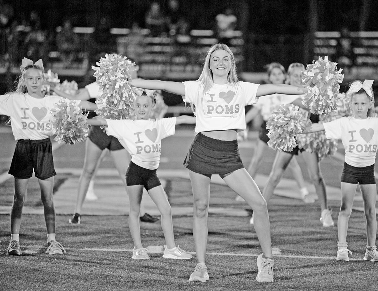 Montini Catholic High School’s dance team—the Broncettes—performed at halftime of the school’s season-opening varsity football game against Chicago’s Westinghouse College Prep High School on Friday night. Senior Claudia Sipchen of the Broncettes is pictured during Friday’s performance, which also included participants in the team’s recent Dance Upon a Star summer camp. The three-day camp (from July 24-26) concluded with performances for family and friends in the school’s gymnasium.