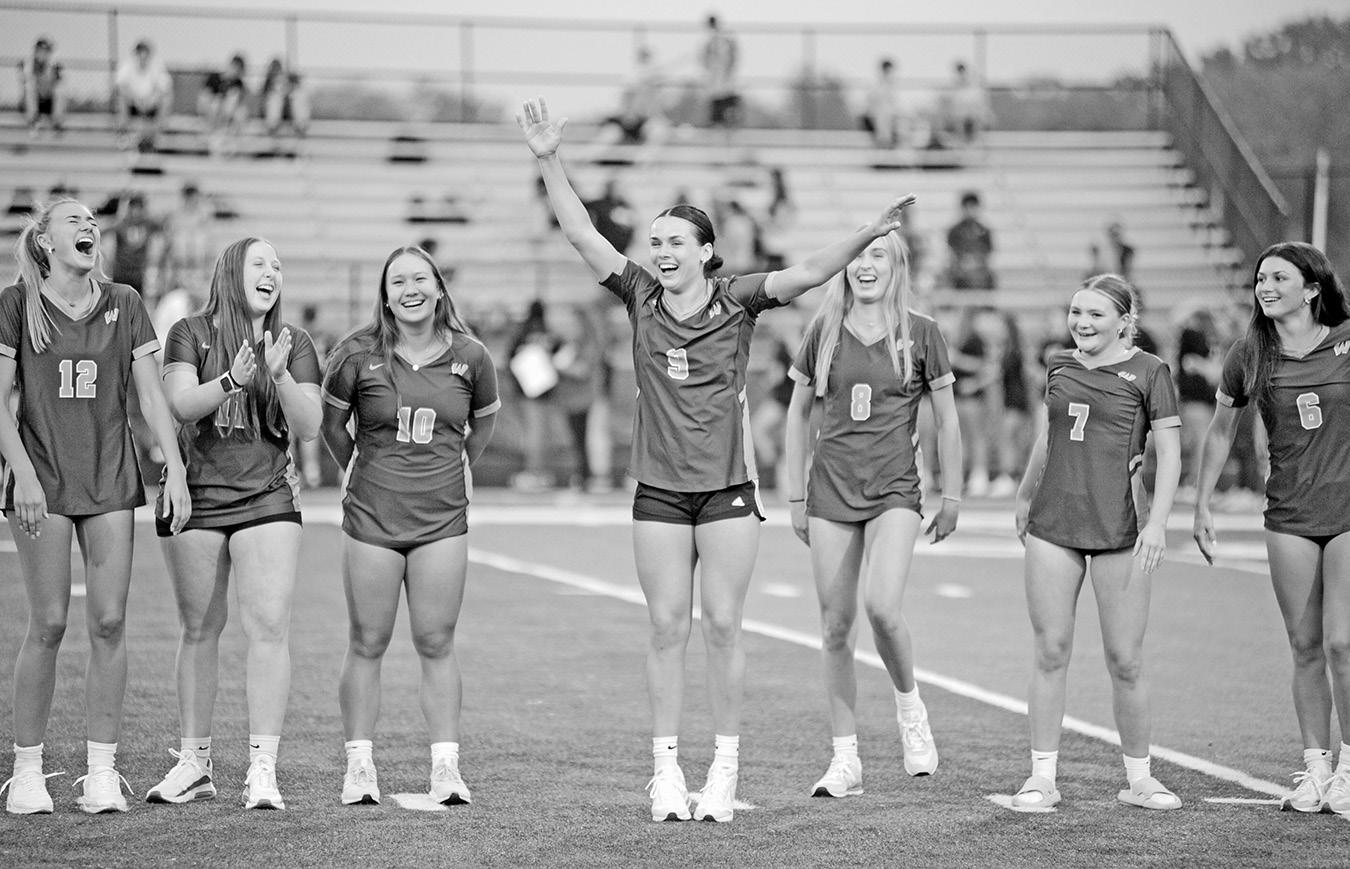 Willowbrook’s girls volleyball team started its 2023 season with last week’s 25-8, 25-16 victory at Bartlett. Senior Calli Kenny, who will play volleyball at the collegiate level for Marquette University’s women’s team, provided four kills, four digs, three assists and an ace in the Warriors’ Aug. 22 win over Bartlett. Kenny (No. 9) and some of her teammates are pictured during their introductions at Willowbrook’s Silver and Blue Community Night event in the school’s stadium on Aug. 18. Pictured left to right are: senior Elle Bruschuk (No. 12), junior Wendalynn Pollak (No. 11), junior Lily Javier (No. 10), Calli Kenny, junior Anna Marinier (No. 8), senior Keri Ostrowski (No. 7) and junior Hannah Kenny (No. 6). Hannah Kenny, who is Calli’s sister, recently committed to play collegiate volleyball at the University of Louisville. She contributed five kills, six assists, three digs and three aces in last week’s win over the Hawks. Senior Elisa Chivilo piled up nine digs and four assists, while Marinier supplied two kills and three digs. Bruschuk added two kills and two digs. Ostrowski made four digs, while Javier connected for two kills. The Warriors were supposed to play a home match against East Aurora on Aug. 24, but the contest was canceled; East Aurora did not have classes that day because of the extreme heat in the area. Willowbrook’s schedule this week includes road matches at Fenwick and Lyons Township. The Warriors will also play in their own Willowbrook Invite this Friday and Saturday.