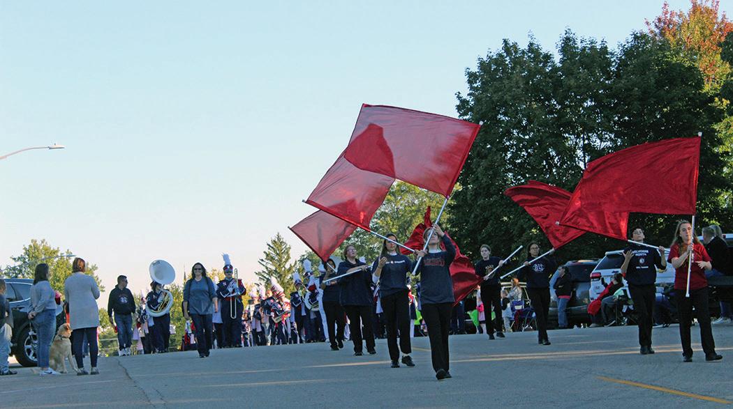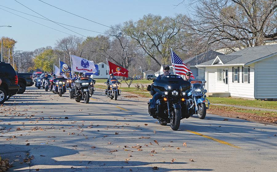 above: This is one section of the line of veterans with their family members that extended from one end of the gym to the other at the assembly celebrating Veteran’s Day at Washington Academy Elementary last November. right: Biker veterans were part of the procession for Army Corporal William Zoellick as it passed by Washington Academy Elementary. The procession went by all District 100 schools.