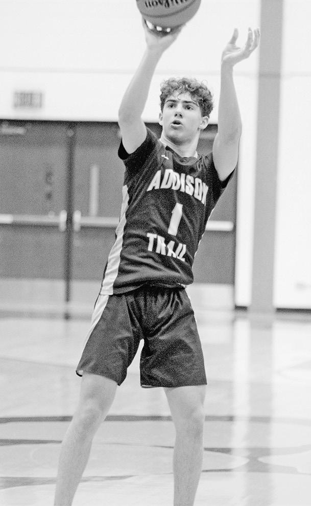 Addison Trail’s girls basketball team defeated Willowbrook 46-44 in overtime in Saturday’s West Suburban Gold Conference game in Addison. Senior Elena Papanicolaou (No. 1 - right) scored 28 points to lead the Blazers to the win. Papanicolaou made six shots from 3-point range during the game. She made a pair of attempts from 3-point territory to account for all six of Addison Trail’s overtime points. The Blazers moved to 2-5 overall and 1-1 in conference play with the win. Another photo from Saturday’s game shows Addison Trail sophomore Emma Caniglia (No. 15 - left), who scored seven points.