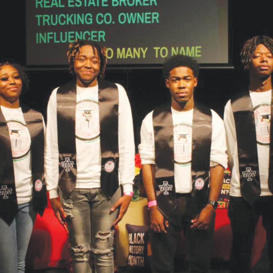Pictured are Addison Trail seniors (from left): Serena Sheats, Malik Hopkins, Damarius Allen and Darius Calvin. As seniors in Addison Trail’s BEYOND Club, which provides mentorship and academic support for black students to enable them to thrive holistically in high school and BEYOND, they received a graduation stole as part of the school’s Black History Month celebration.