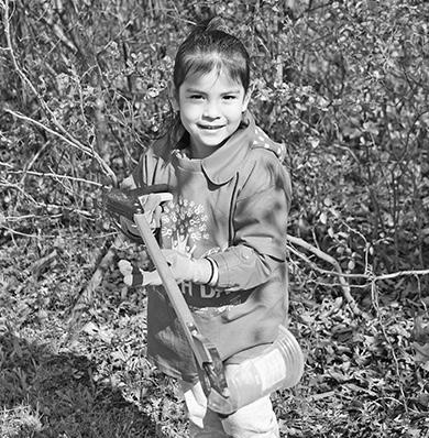 This volunteer beams with pride as she shows off the trash she was able to pick up with her grabber. An outstanding Earth Day effort.
