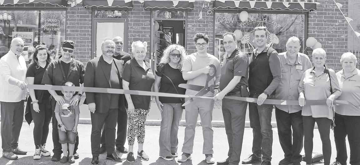 of the Village Board and the Bensenville Chamber of Commerce join Village President Frank DeSimone and store owner Franco DeAstis and his family as they cut the ceremonial red ribbon in front of the new Twelve-O-Five Comics located at 1450 W. Irving Park Road. The new store offers a wide selection of comic