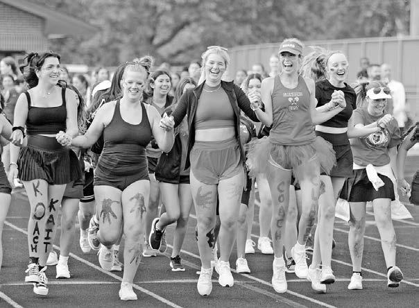 Glenbard East High School held its eighth annual Red and Black Athletic Community Night on Friday. The event, which featured several scrimmages by the Rams’ fall athletic teams, concluded with the varsity football team’s scrimmage in the school’s stadium. Friday’s celebration also included performances by Glenbard East’s marching band, cheerleaders and dance team, as well as a parade of the Rams’ fall athletic teams on the stadium track. Pictured during that parade are members of Glenbard East’s cheerleading (top left), boys soccer (left), girls tennis (top right) and girls volleyball (bottom) teams.