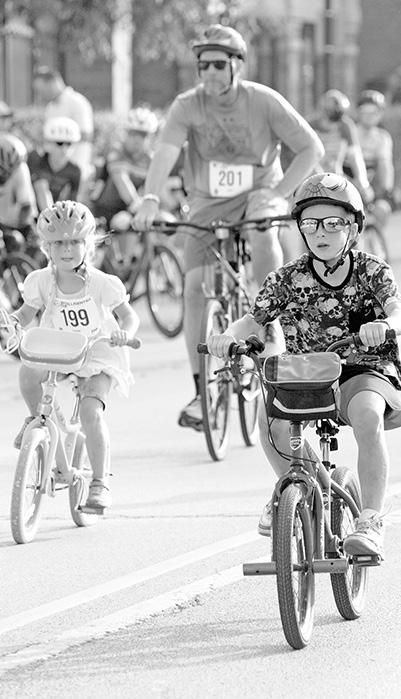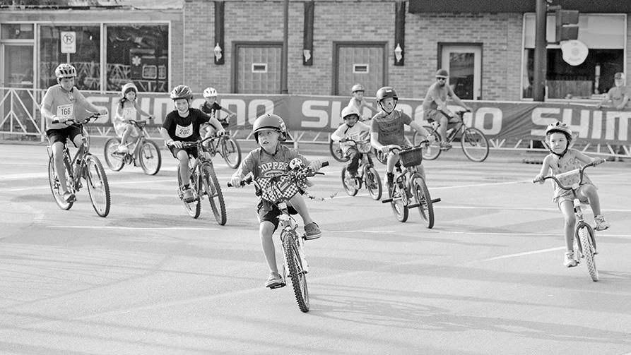 of the day’s races featured several laps of racing around the course. The above photos show action from the 75-minute women’s pro race (right) and the final event of the day—the 75-minute men’s pro race (left). A family fun ride that took place before the men’s pro race gave riders of all ages a chance to pedal three laps around the course.
