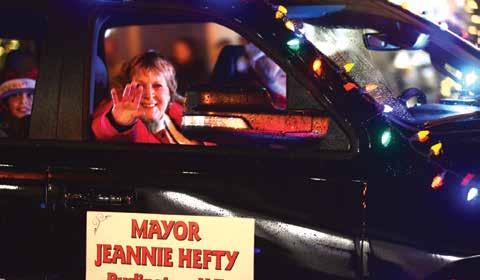 at left: Hefty waves to the crowd during the annual Christmas parade in downtown Burlington last December. She served as mayor for 16 years and stepped down in the spring.