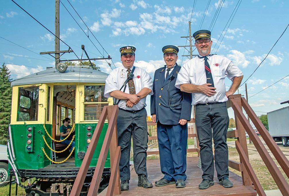 above: The East Troy Railroad Museum restores historical railroad cars to run on its line. top: Volunteers Chris Orlowski, Steve Rudolph and Todd Schmidt await passengers reboarding at the Elegant Farmer platform.