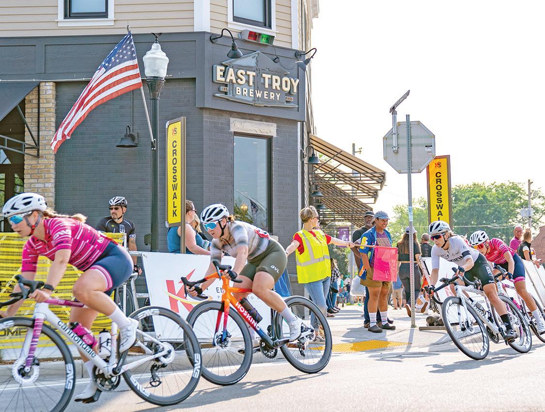 The Pro Women’s race speeds past the East Troy Brewery during the 2023 Cycling Classic. The East Troy Cycling Classic returned to the Village Square June 16 with high-energy bike races all day long, Day 2 of the Tour of America’s Dairyland, the day also included events for local participants.
