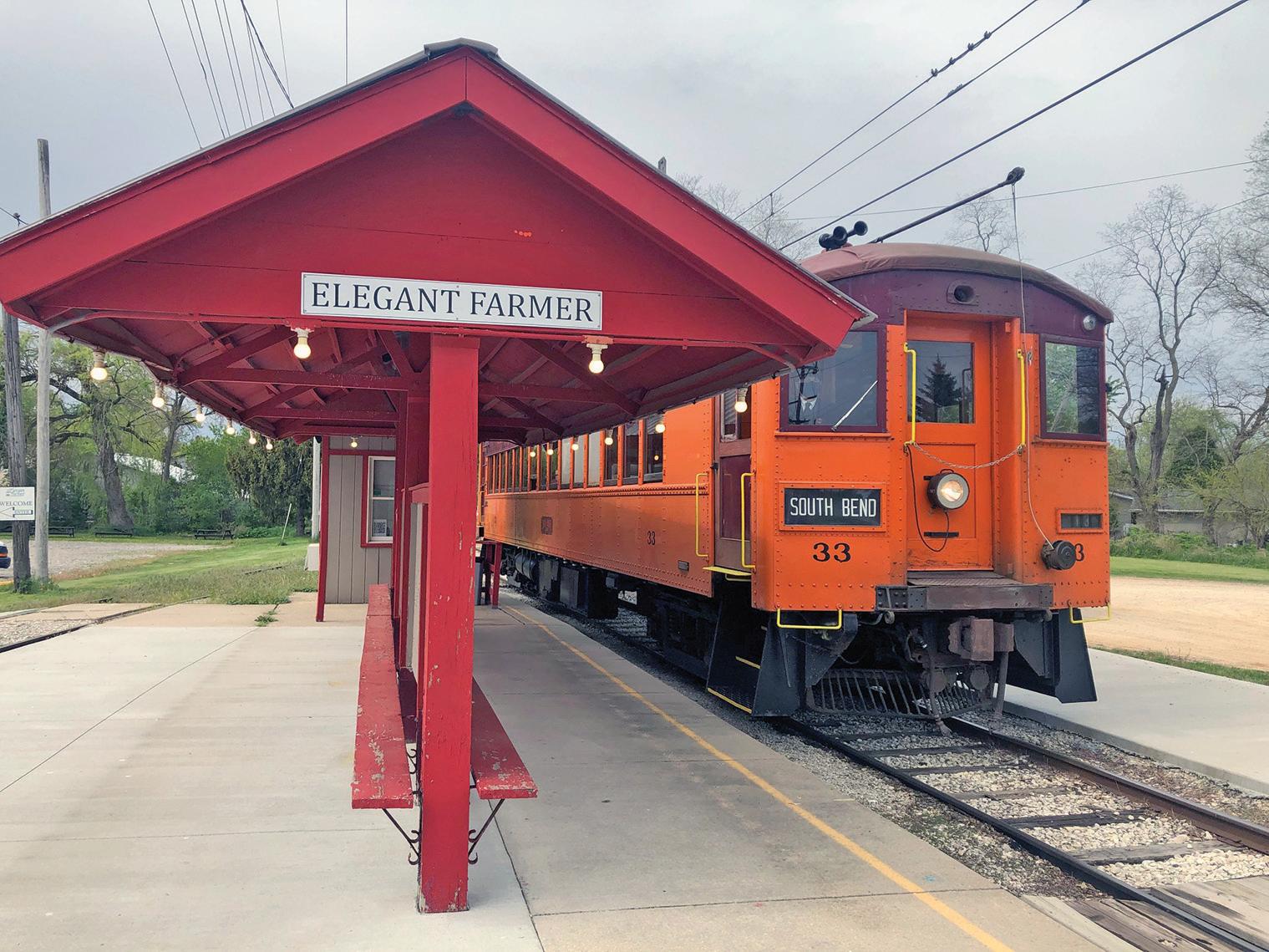 East Troy Railroad Museum Car 33 arrives at the Elegant Farmer in East Troy.