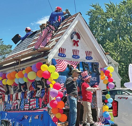 below: the ‘24 memorial day parade in east troy was led by the american legion and vfW color guard. above: among the participants was the east troy middle school band. at left: following a remembrance ceremony, brothers William Lilly, 7, and Caleb Lilly, 13, both scouts, enjoy lunch at the east troy Corn & brat roast.