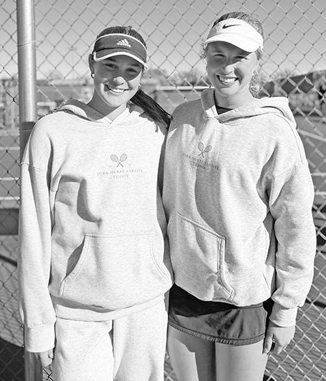 SUBMITTED PHOTO Elmhurst Independent York girls tennis doubles standouts CJ Coan (left) and Josie Coan went 3-2 in the recent Class 2A state doubles tournament, reaching the consolation quarterfinals. The Coans helped York finish fourth as a team at state.